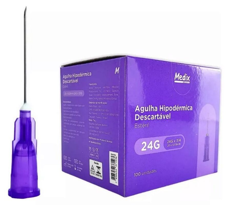 AGULHA HIPODÉRMICA DESCARTÁVEL 20×0,55MM 24G ROXA MEDIX BRASIL