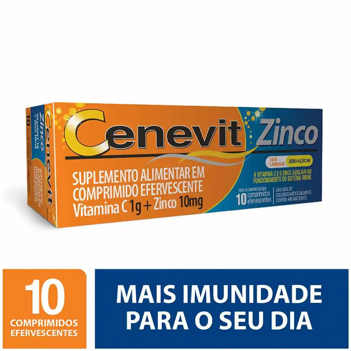 CENEVIT ZINCO VITAMINA C + ZINCO + IMUNIDADE C/ 10 COMPR. ENFERVESCENTES LARANJA quantidade