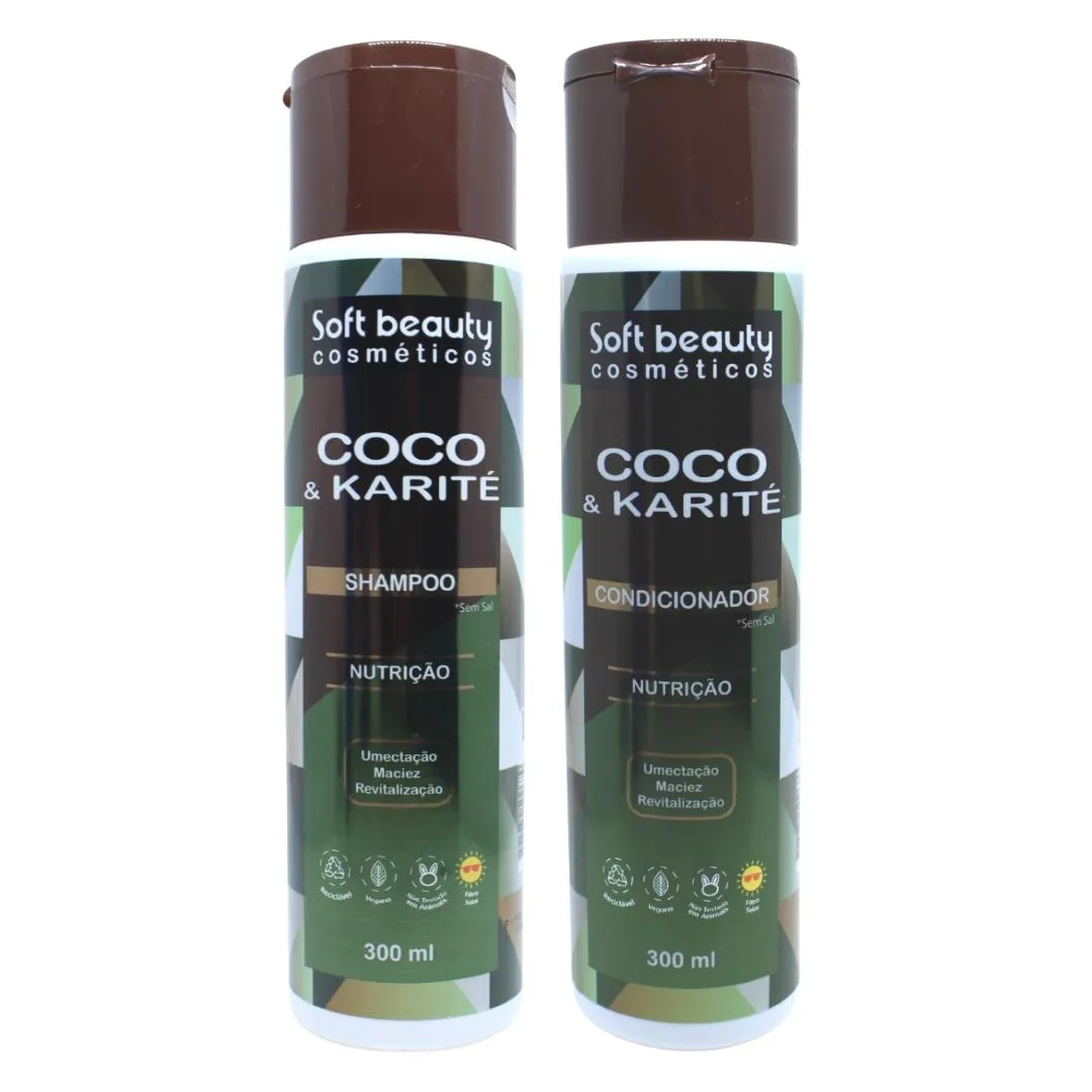 KIT SHAMPOO + CONDICIONADOR COCO & KARITÉ 300ML SOFT BEAUTY